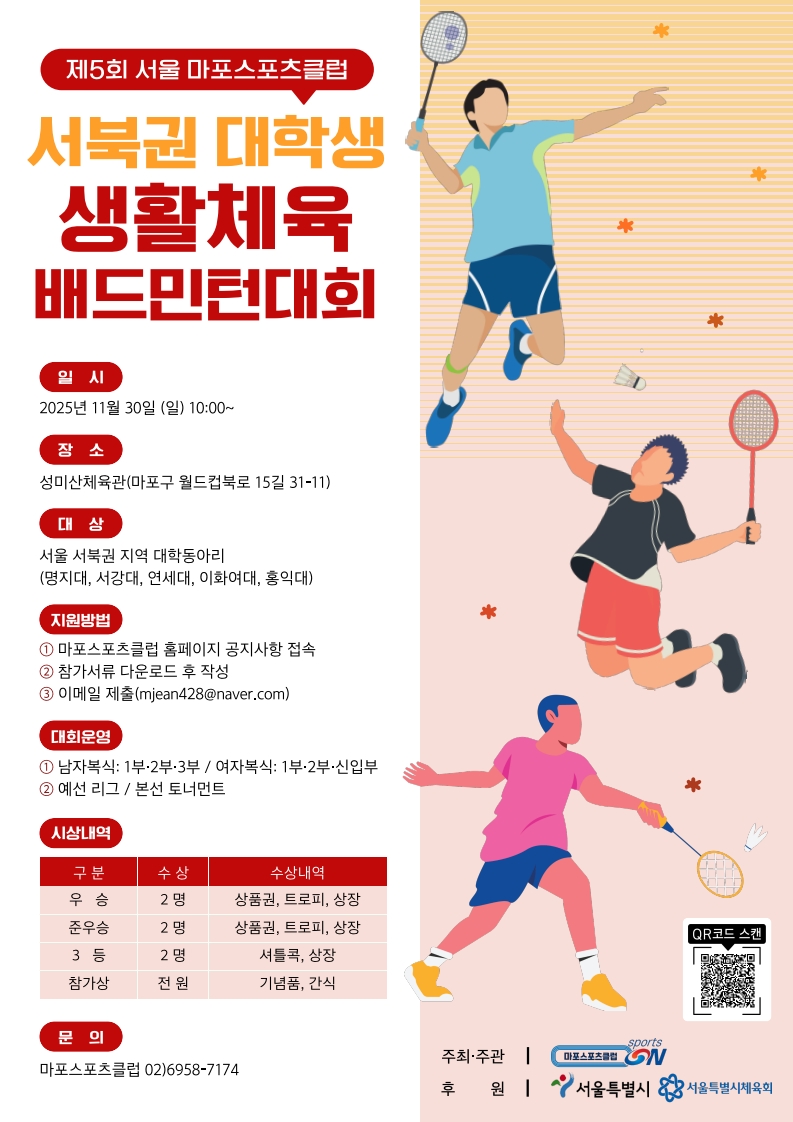 제5회 서울 마포스포츠클럽 서북권 대학생 배드민턴대회