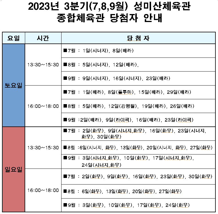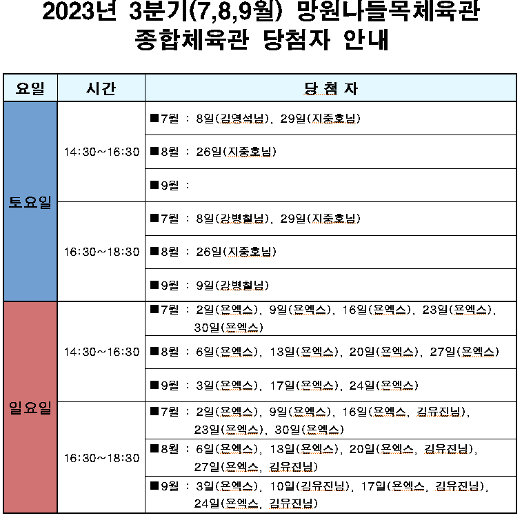 ※ 대관승인 후 마포구청 및 마포스포츠클럽, 마포구체육회에서 개최하는 행사, 사업 및 단기행사 등으로 체육관 대관이 취소될 수 있습니다