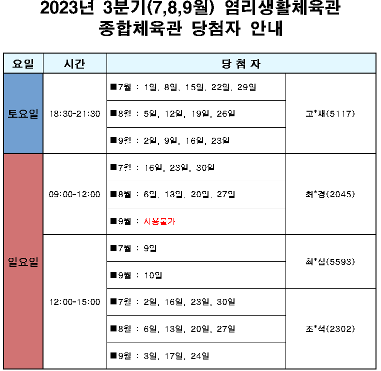 - 대관료입금기간 : 6월 21일(수) ~ 23일(금) 16:00 까지