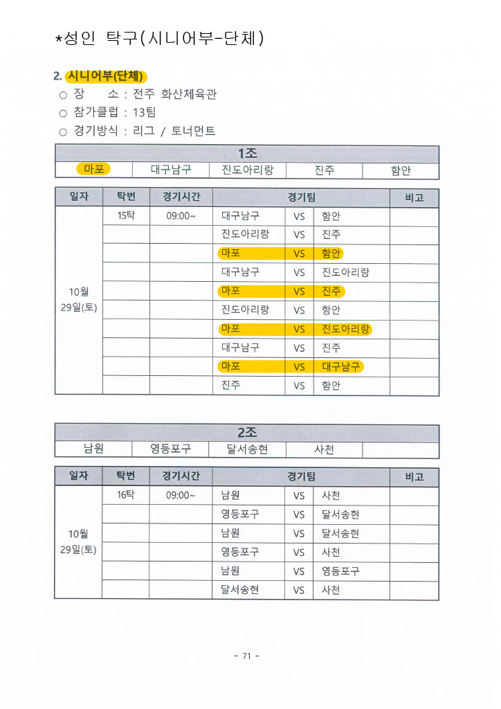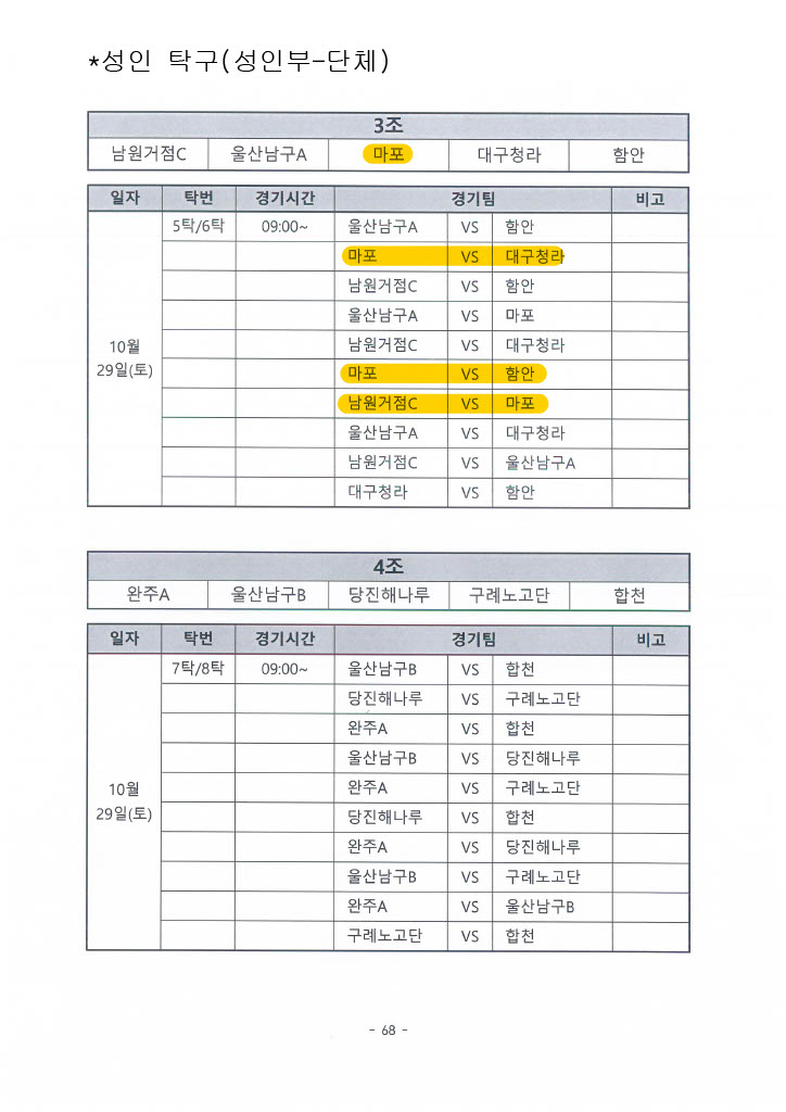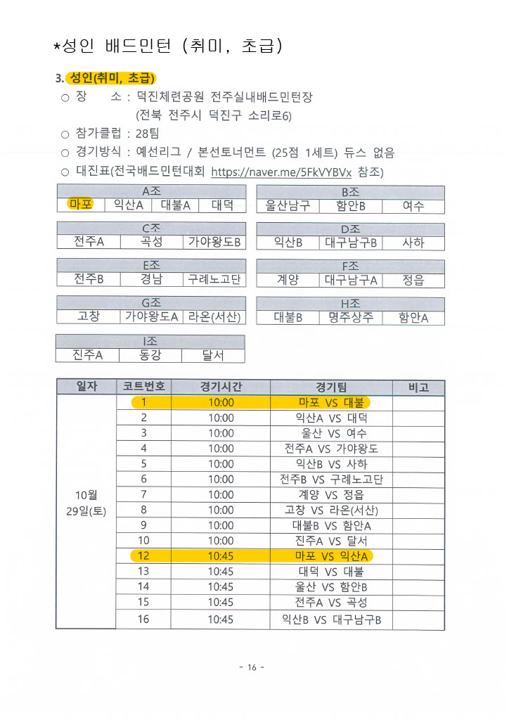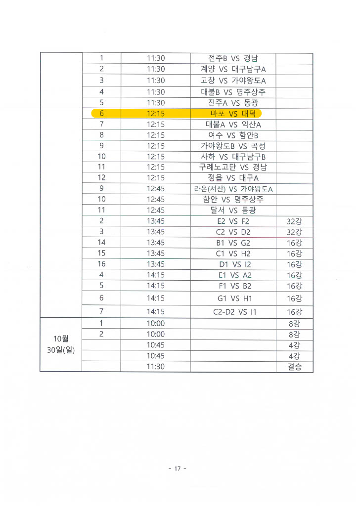 제5회 전국 스포츠 교류대회 대진표(성인)