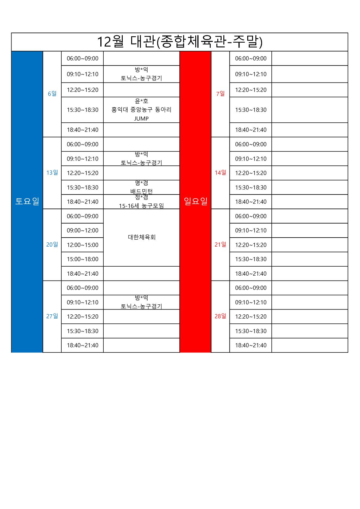 [마포365구민센터] 2025년 11월~12월 종합체육관 대관 접수 현황