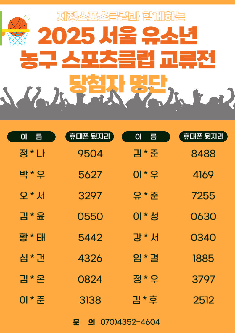 [2025 서울 유소년 농구스포츠클럽 교류전]에 선정되셨습니다.