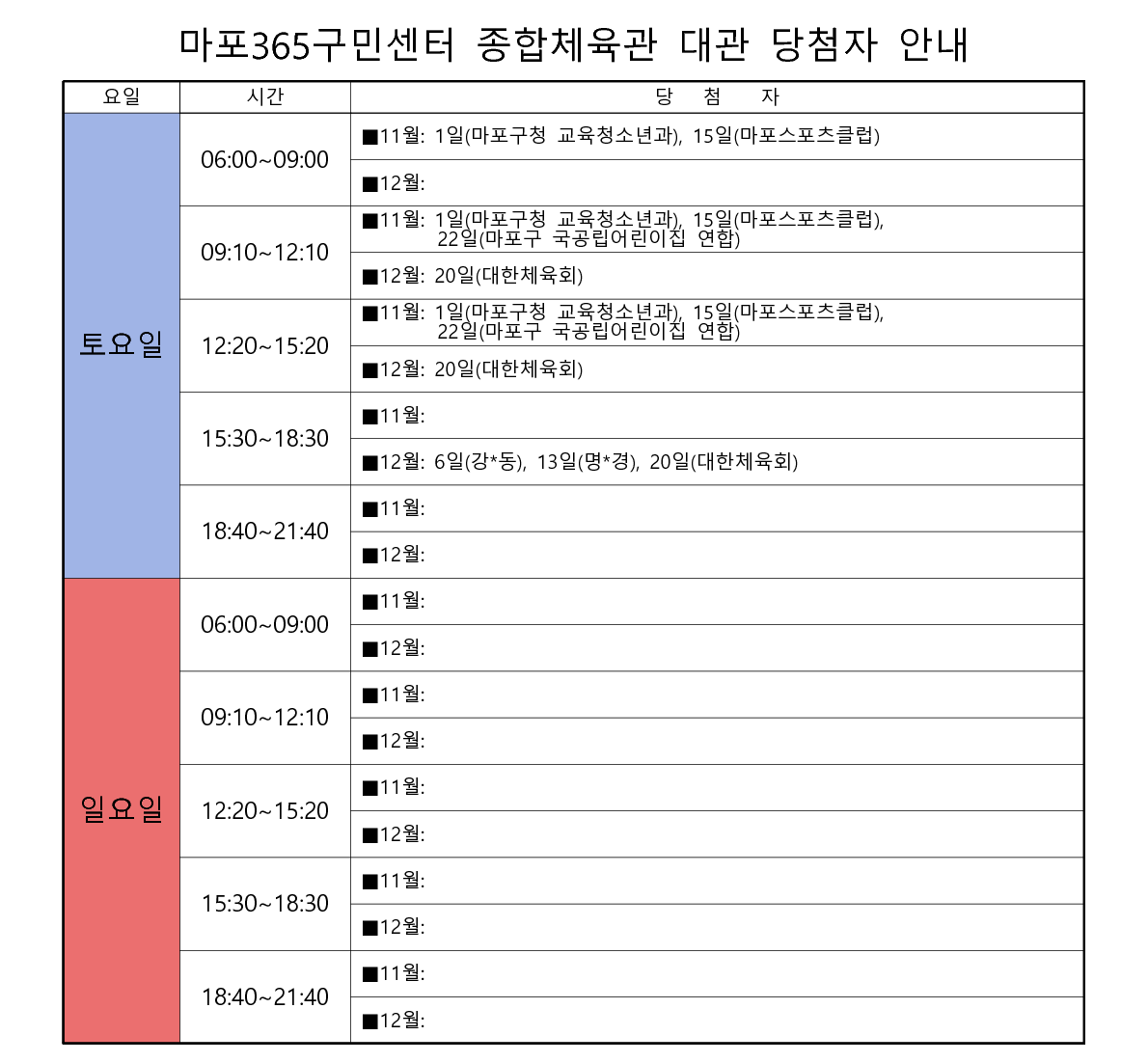 [마포365구민센터] 2025년 11~12월 대관 당첨자 안내
