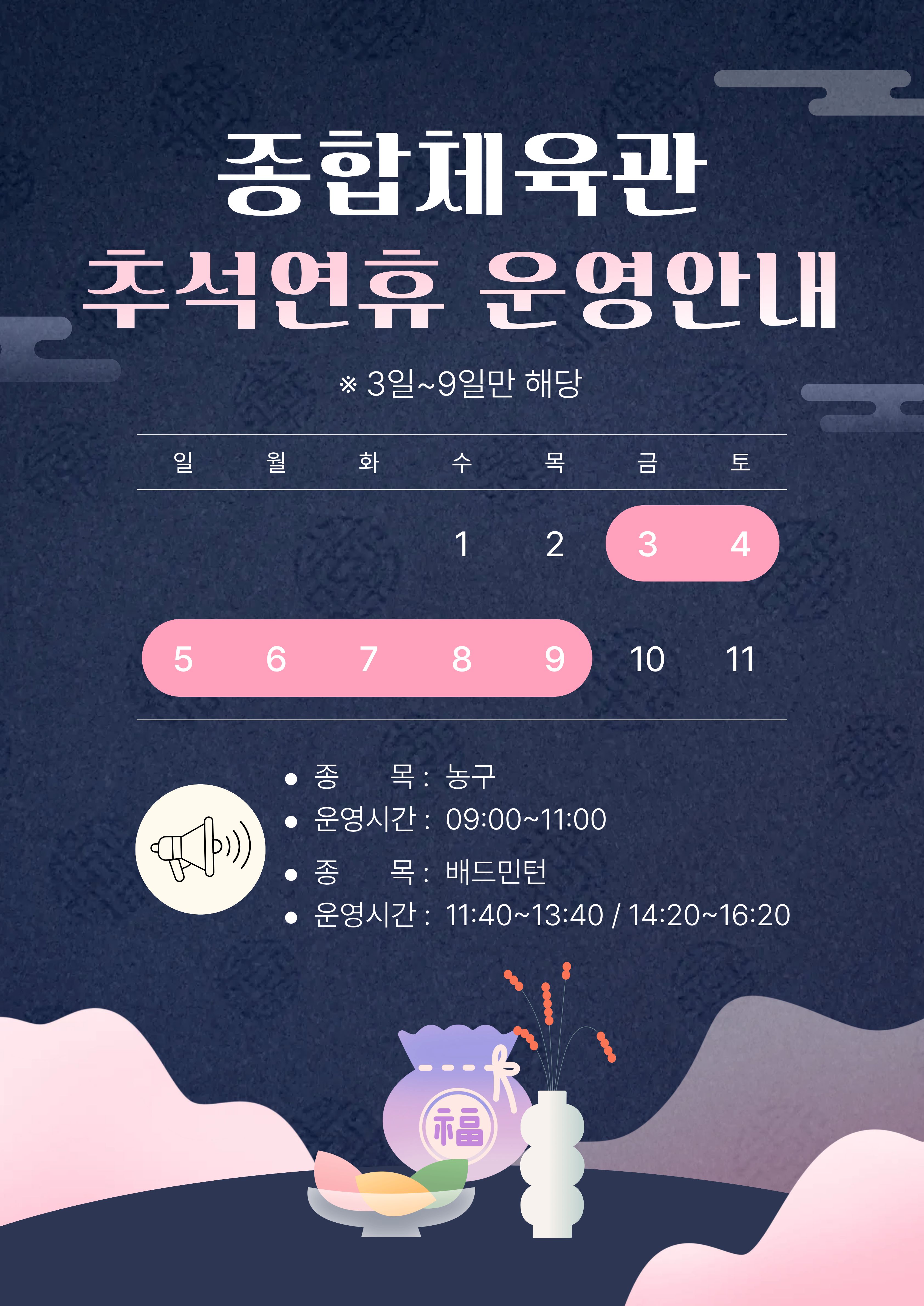 마포365구민센터 종합체육관/피트니스센터 추석연휴 운영 안내