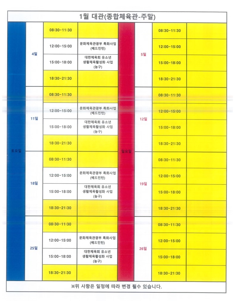 유소년 배드민턴 1월 강습시간표