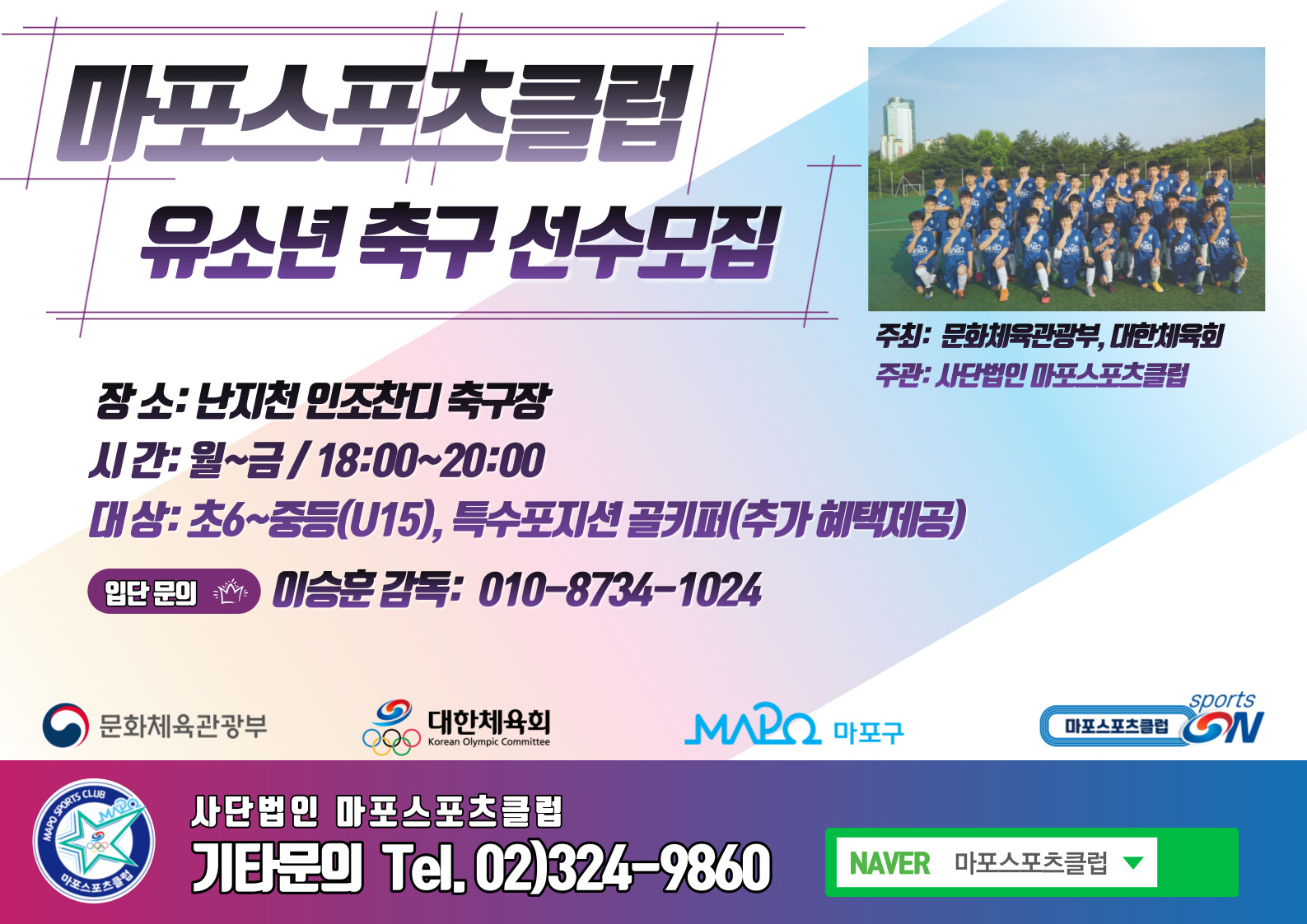 마포스포츠클럽 유소년 축구(U12, U15) 선수모집