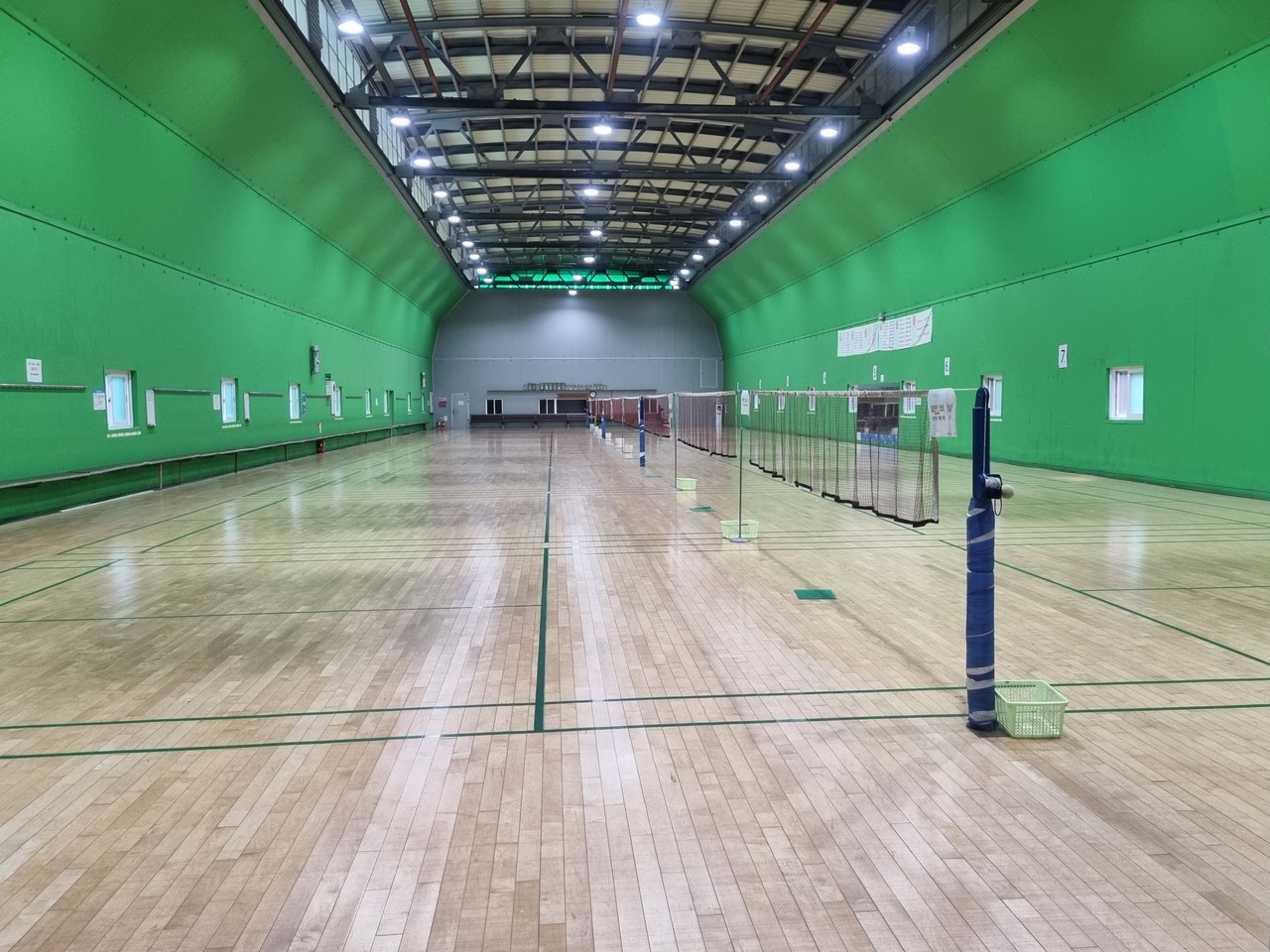 안내데스크, 배드민턴 9면, 샤워장, 사무실 등