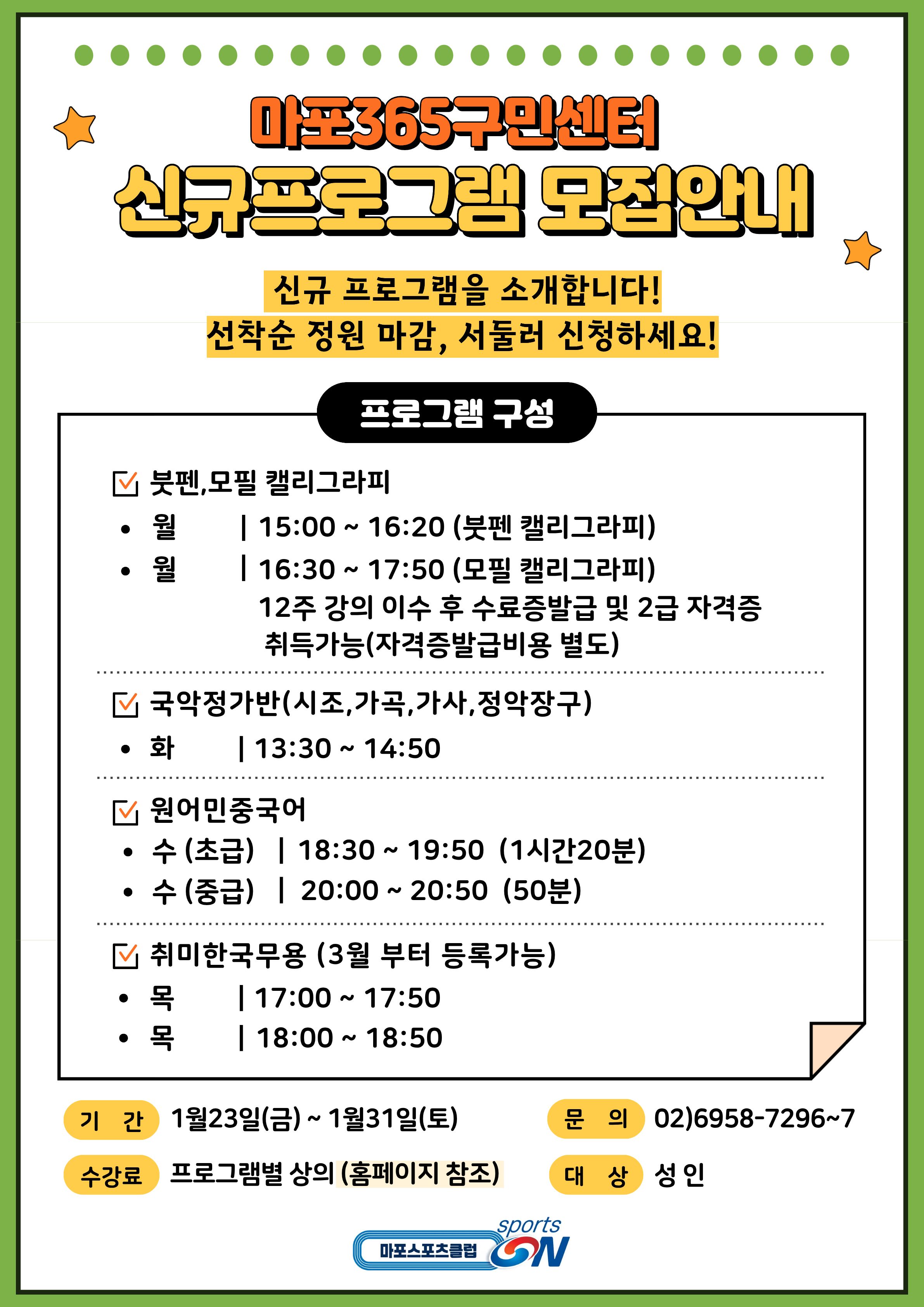 마포365구민센터 신규프로그램 모집안내